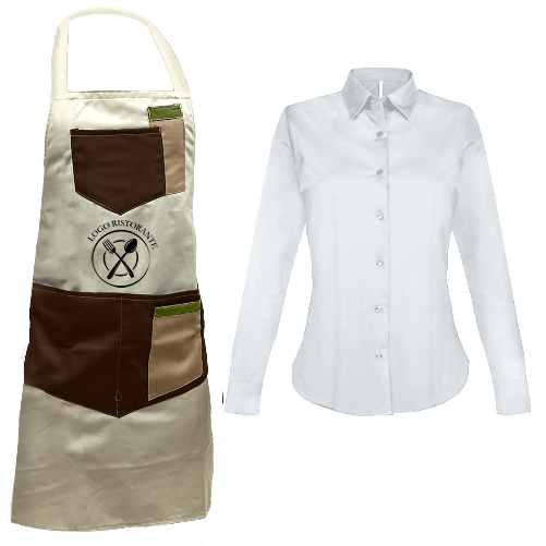 Kit completo per cameriere donna sala con grembiule e camicia di alta qualità made in italy M Bianco 40,37 €