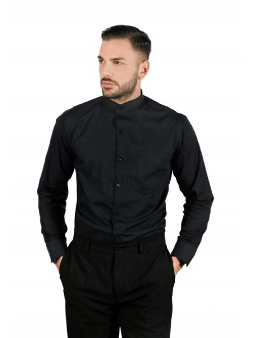 Camicia Uomo Cotone Nera Collo Coreana Casual Slim fit Manica Lunga - Personalizzabile con il tuo logo XXL Nero 36,16 €
