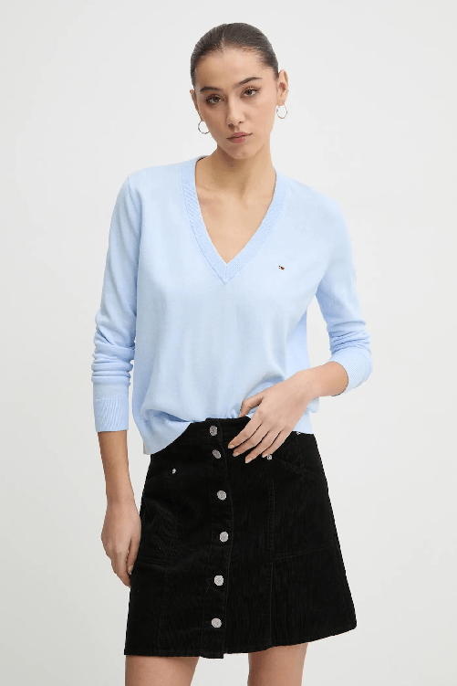 MAGLIA MAGLIE DONNA TOMMY JEANS DW0DW19888 COTONE CELESTE ORIGINALE PE 2025 L Blu 67,42 €- 25%Prima era 89,90 €