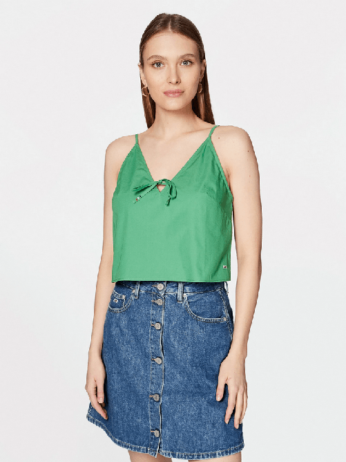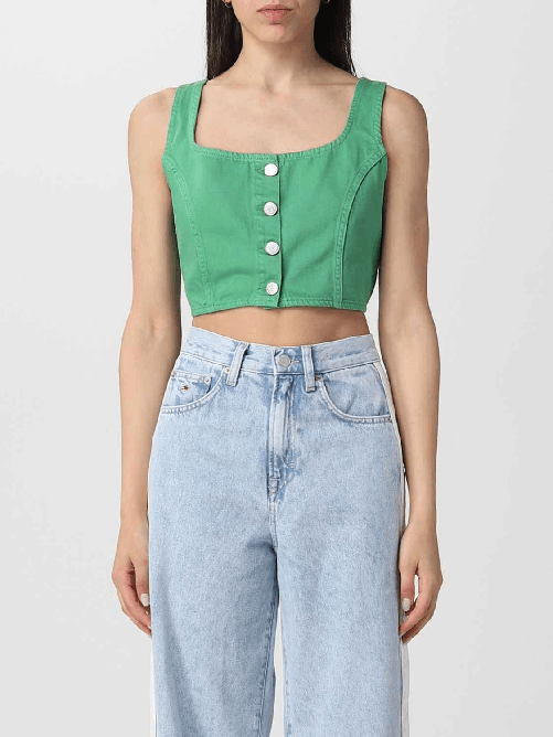 MAGLIA TOP DONNA TOMMY JEANS DW0DW15664 COTONE VERDE ORIGINALE PE 2023 L Verde