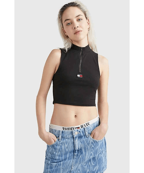 MAGLIA TOP CANOTTA DONNA TOMMY JEANS DW0DW15313 NERO ORIGINALE PE 2023 L Nero
