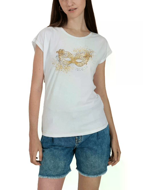GAUDI' T SHIRT MAGLIA DONNA GAUDI 511BD64017 COTONE BIANCO ORIGINALE PE 2025