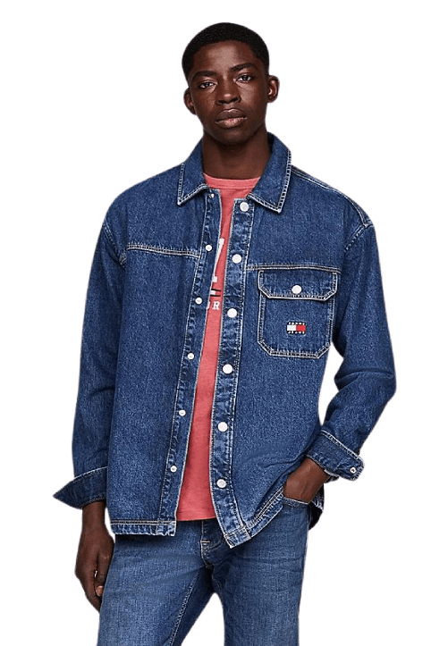 CAMICIA CAMICIE UOMO TOMMY JEANS DM0DM18328 COTONE BLU ORIGINALE AI 2025 M Blu