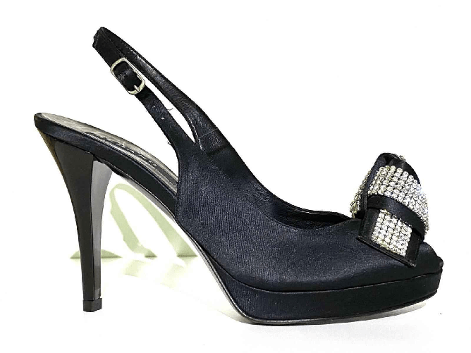 SCARPE DECOLTE SANDALO TACCO DONNA ALBANO 7849 RASO NERO ORIGINALE PE 35 Nero
