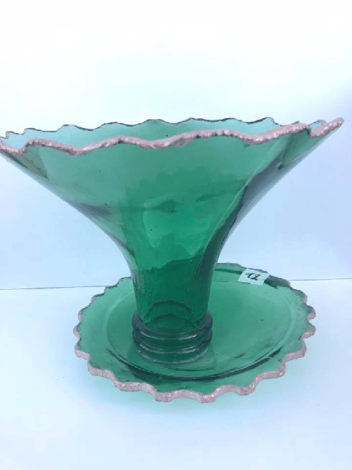 PORTABICCHIERI IN VETRO RICICLATO ARTIGIANALE FATTO A MANO REGALO OGGETTI NEW H 14 X D 8 CM VERDE BOTTIGLIA/ ORO 34,90 €