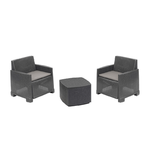 Set Salotto Esterno Con 2 Poltrone Tavolino Contenitore Effetto Rattan Cuscini Giardino - Antracite 203,99 €