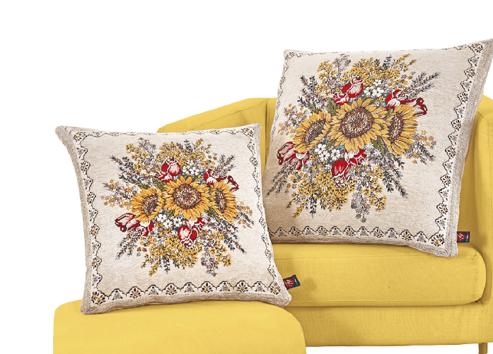 Federa Cuscino Arredo Casa Fodera Tessuto Cinigliato Floreale Sunlight Girasoli