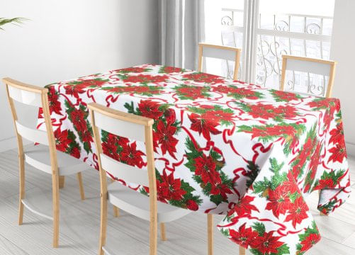 Tovaglia Natalizia Cucina Soggiorno In 100% Cotone Disegno Fiocco Stelle Natale