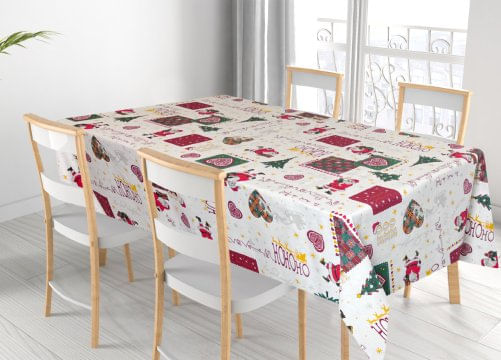 Tovaglia Natalizia Cucina Soggiorno In 100% Cotone Disegno Oh Oh Panna