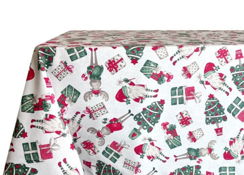 Tovaglia Natalizia Cucina Soggiorno In 100% Cotone Disegno Elfi Renne