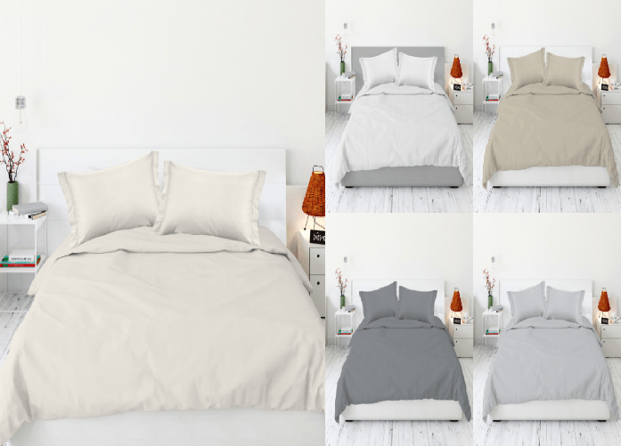 Parure Copripiumino Letto Matrimoniale 100% Raso Cotone Tinta Unita Made Italy
