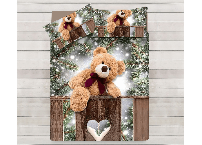 Parure Copripiumino Coppia Federe Letto 100% Cotone Sogni D'oro Disegno Teddy Bear