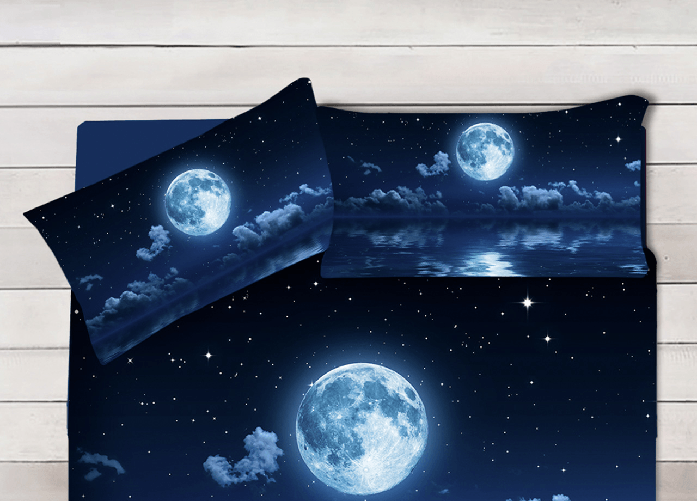 Parure Copripiumino Coppia Federe Letto 100% Cotone Sogni D'oro Disegno Luna