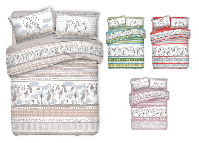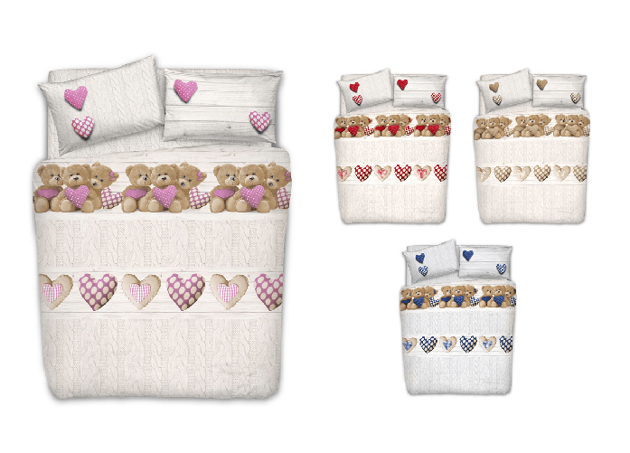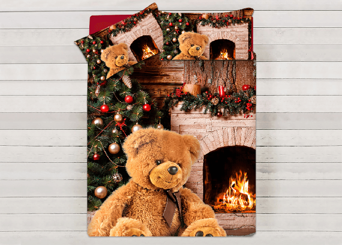 Parure Copripiumino Sacco Piumino Letto 100% Cotone Sogni D'oro Disegno Camino Orso Dis. 68