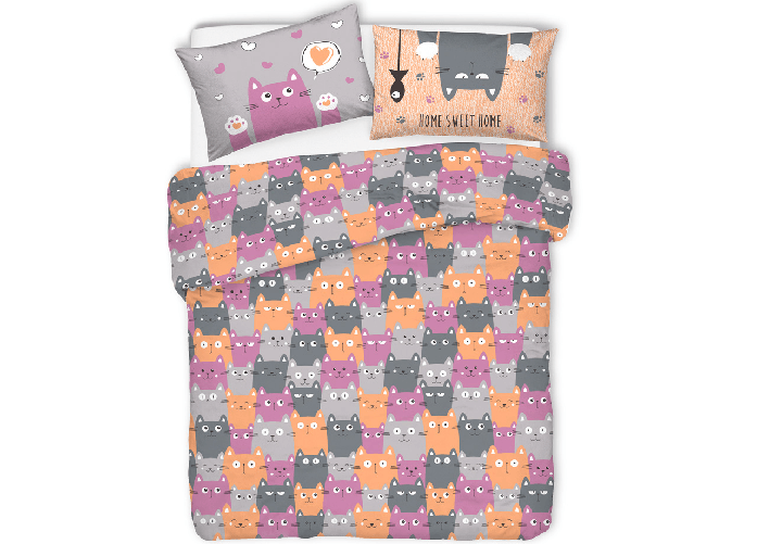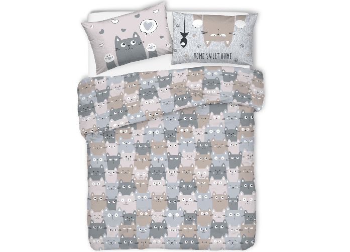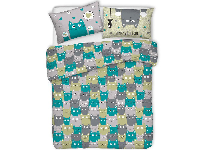 Copripiumino Sacco Piumone Pensieri Delicati Cotone Disegno Happy Cat
