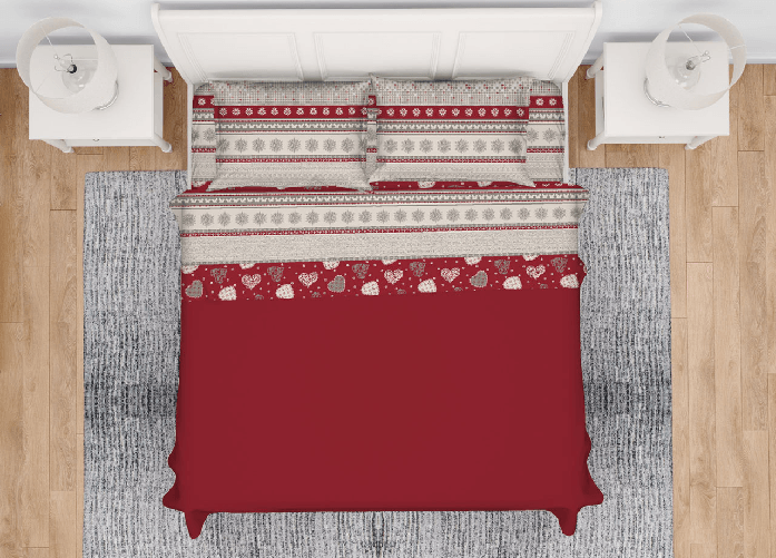 Copripiumino Sacco Piumone 100% Cotone Disegni Natalizi Invernali Renne Cuori OB