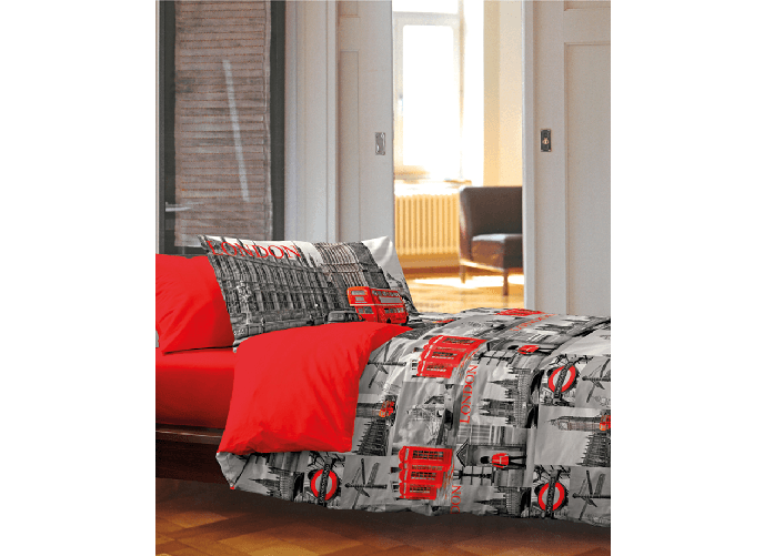 Copripiumino In 100% Cotone Disegno Londra Modello OB
