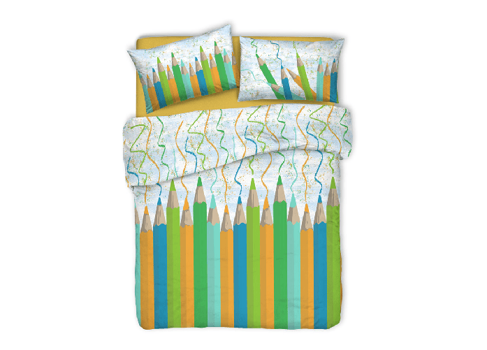 Copripiumino Linea Pensieri Delicati In 100% Cotone Dis. Matitoni Colore Verde