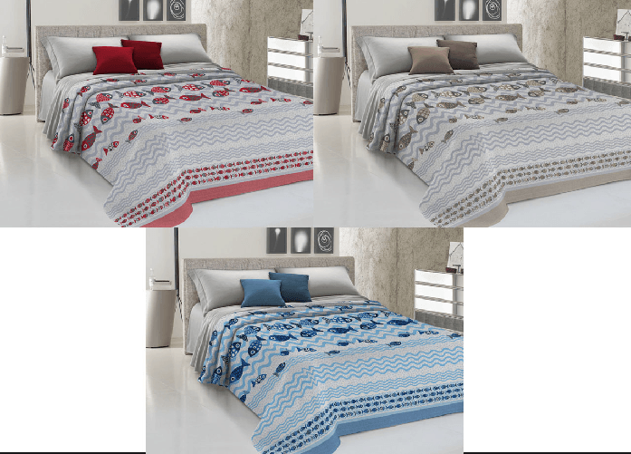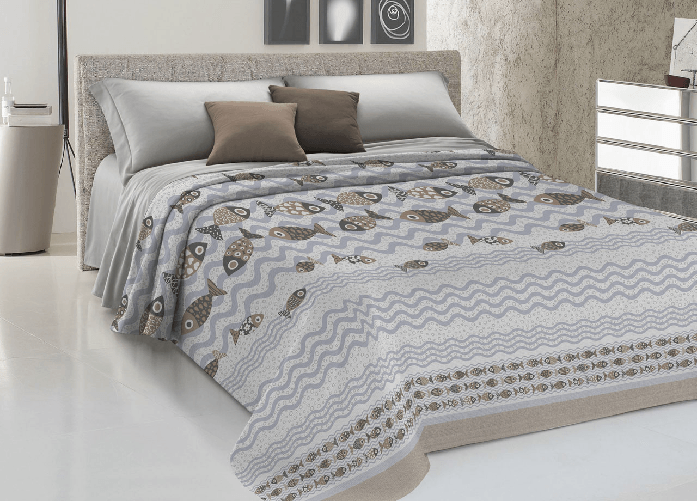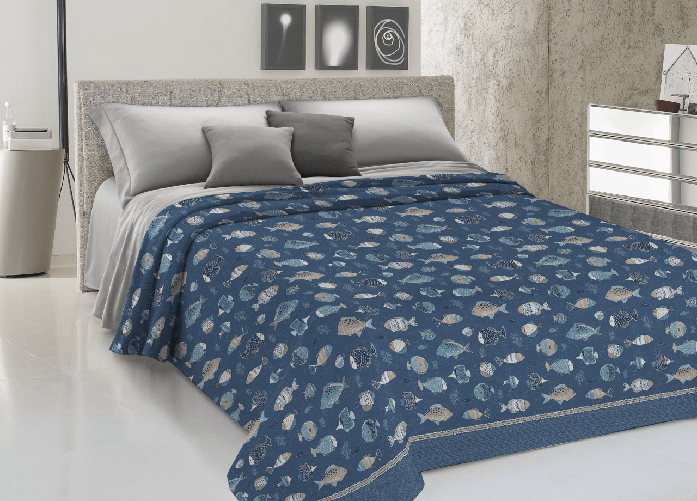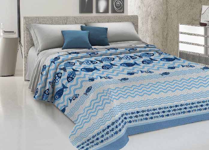 Copriletto Piquet Primavera Estate 100% Cotone Disegno Pesciolini