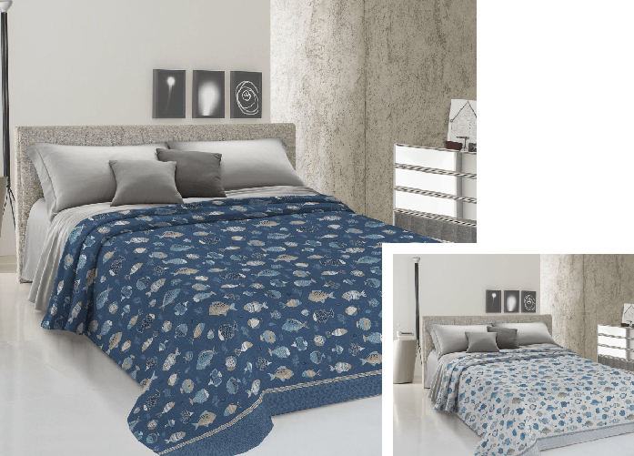 Copriletto Piquet Primavera Estate 100% Cotone Disegno Oceano
