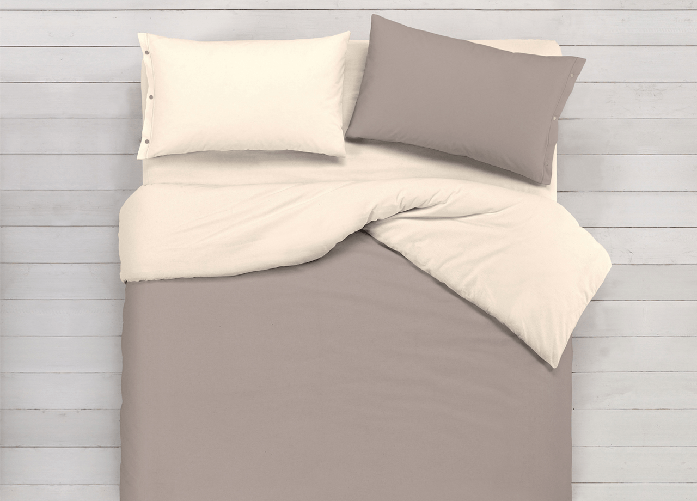 Copripiumino In 100% Cotone Double Face Tortora/Beige