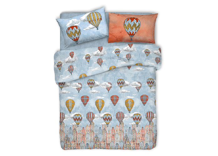Copripiumino Sacco Piumone Pensieri Delicati Cotone Disegno Mongolfiera