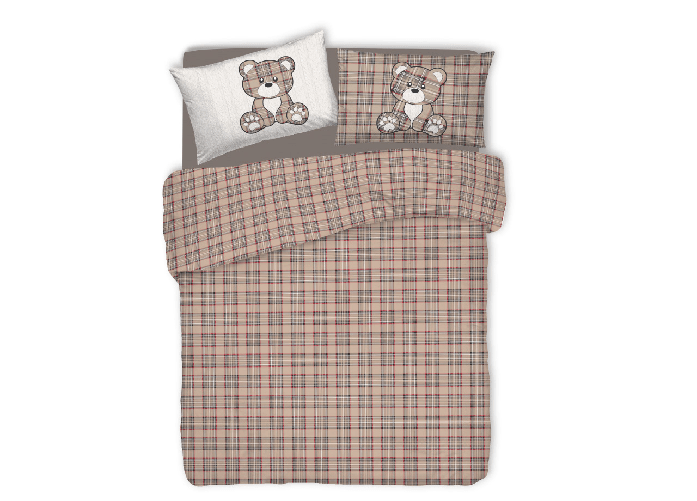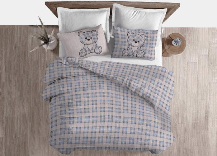 Copripiumino Sacco Piumone Pensieri Delicati 100% Cotone Orsetto Tartan