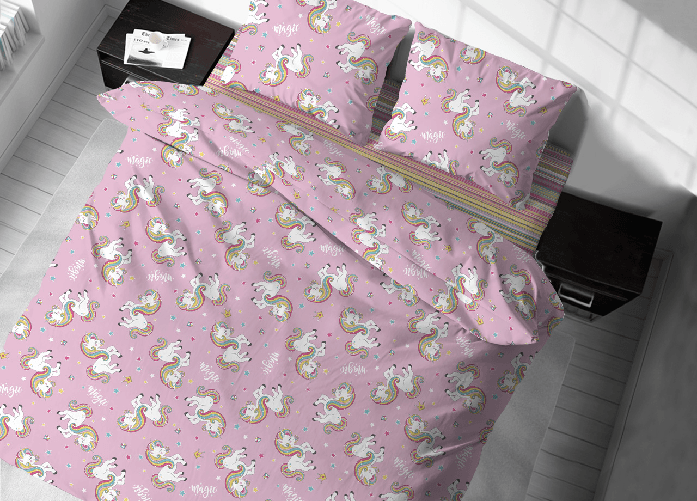Copritrapunta Sacco Per Trapunta 100% Cotone Disegno Unicorno Rosa