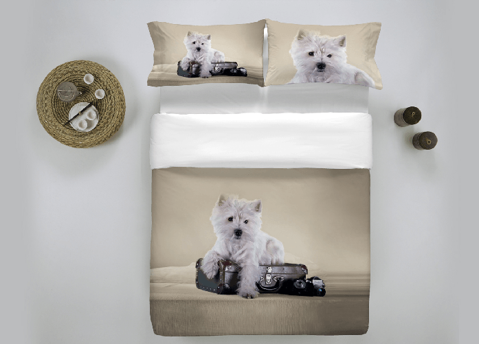 Parure Copripiumino Coppia Federe Letto 100% Cotone Sogni D'oro Disegno Puppies