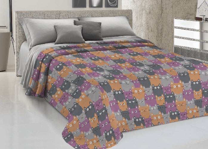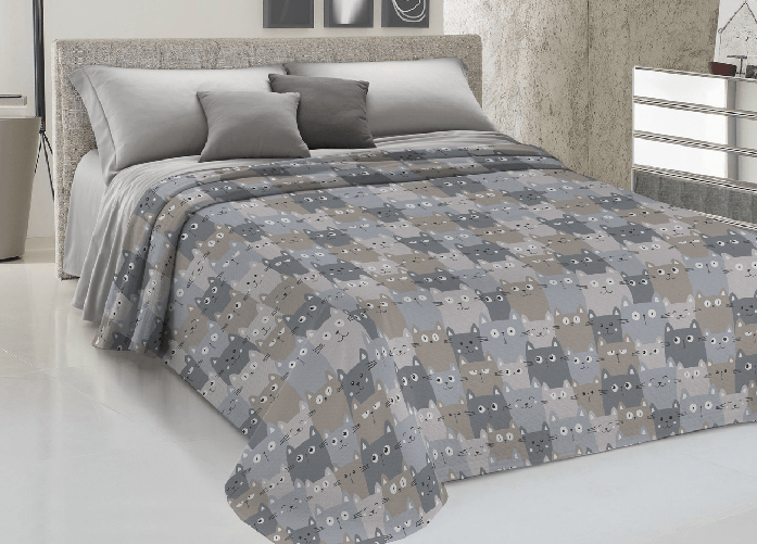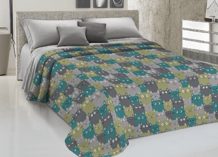 Copriletto Piquet Primavera Estate 100% Cotone Disegno Happy Cat