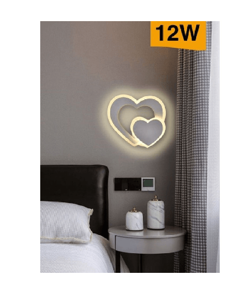 Applique Muro Led Interno Moderno Doppio Cuore 12 W Luce 3000k 4000k 6500k E83-b - -Bianco Freddo - 27,99 €