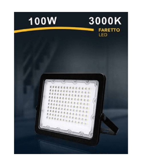 Faro Led 100w Faretto Ultra Slim Esterno Nero Ip65 Luce 6500k 4000k 3000k Fs100w-n - -Bianco Naturale - 44,99 €