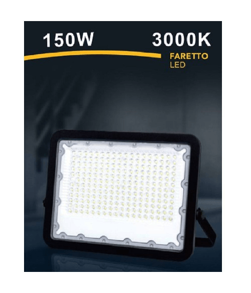 Faro Led 150 Watt Proiettore Esterno Ip65 Nero Luce 3000k 6500k 4000k Fs150w-n - -Bianco Caldo - 73,99 €