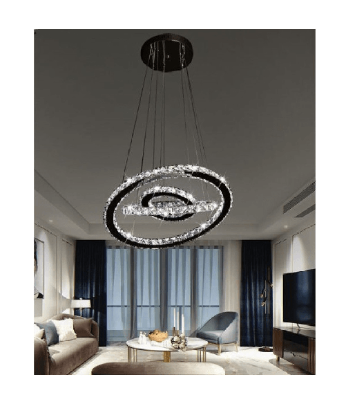 Lampadario Led Sospensione 55w 3 Anelli Cristalli Acrilico Luce 6500k 4000k B50 - -Bianco Naturale - 191,99 €