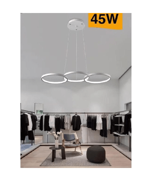 Lampadario Moderno A Sospensione Led 3 Cerchi 45watt Luce 3000k 4000k 6500k B63b - -Bianco Naturale - 117,99 €