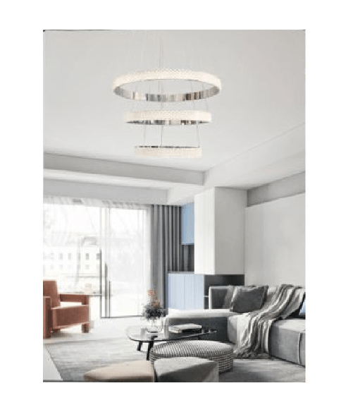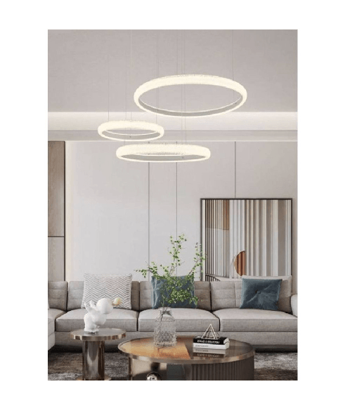 Lampadario Led 60w A Sospensione 3 Anelli Cristalli Luce 3000k 6500k 4000k Lp-39b - -Bianco Freddo - 88,99 €