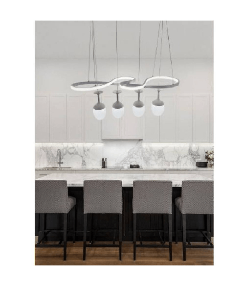 Lampadario A Led Curve Bianco 4 Punti Luce 68 Watt Luce 3000k 4000k 6500k Lp-24b - -Bianco Freddo - 176,99 €