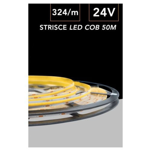 Striscia Led Cob Luce 4000k 6500k 3000k Bobina 50 Mt 24v Smd 500w 8 Mm Cob-50m-324 - -Bianco Freddo - 0,00 €