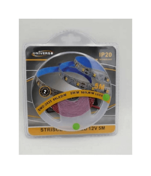 Striscia Led Smd 2835 Strip 5 Mt Dc 12v Luce 6500k 3000k 4000k Ip20 2835-12v-5mm - -Bianco Naturale - 15,99 €