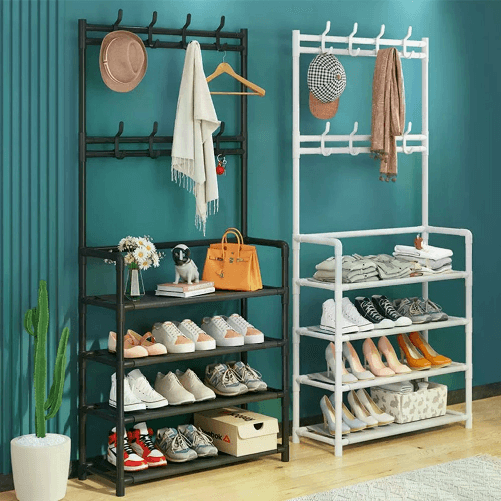 Scarpiera Appendiabiti in Metallo 2 in 1 60x26x170 cm Bianco