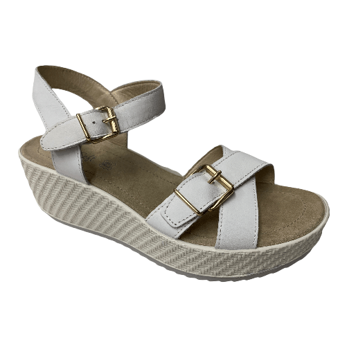 ENVAL & SOFT SCARPE SANDALI SANDALO ZEPPA DONNA ENVAL SOFT 59833 PELLE BIANCO ORIGINALE PE