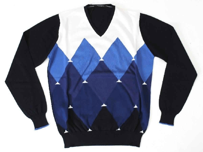 FERRANTE MAGLIA MAGLIE MAGLIONE UOMO FERRANTE 24709 BLU QUADRI COTONE ORIGINALE PE NEW