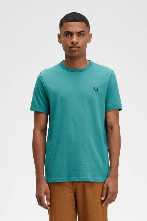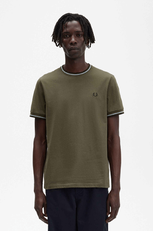 MAGLIA T SHIRT MAGLIE UOMO FRED PERRY M3519 192504 COTONE VERDE ORIGINAL PE 2023 XL Verde