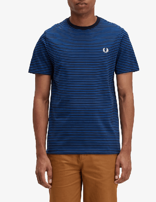 MAGLIA T SHIRT MAGLIE UOMO FRED PERRY M5608 192147 COTONE BLU ORIGINALE PE 2023 L Blu