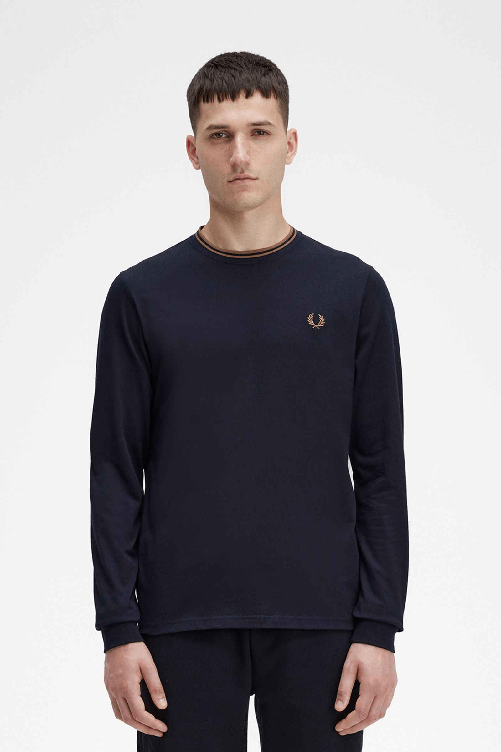 Fred Perry MAGLIA FELPA MAGLIE UOMO FRED PERRY M7535 185675 COTONE BLU ORIGINALE PE 2023