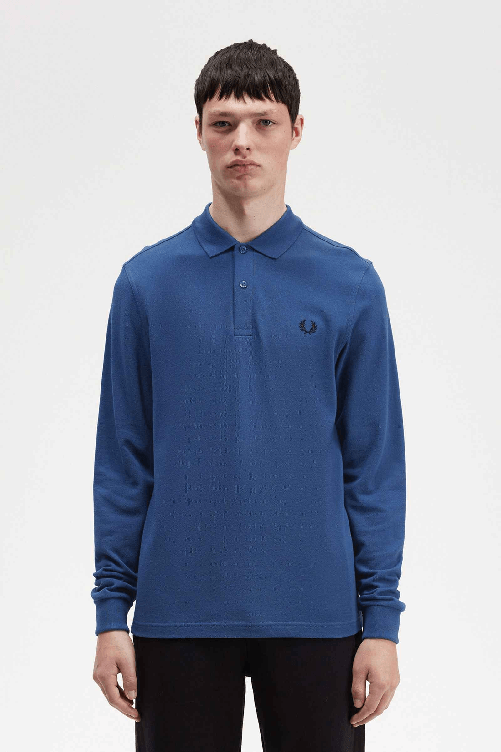 MAGLIA POLO MAGLIE UOMO FRED PERRY M9602 192107 COTONE BLU ORIGINALE PE 2023 S Blu