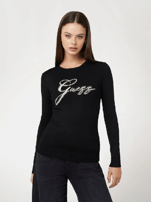 MAGLIA MAGLIE DONNA GUESS W4BR04Z2NQ2 NERO ORIGINALE AI 2025 M Nero