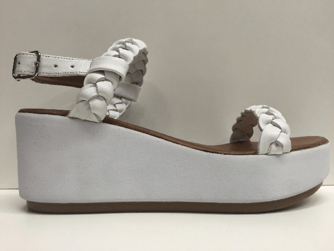 INUOVO SCARPE SANDALI DONNA INUOVO ORIGINALI 6164 WHITE PELLE + CUOIO ZEPPA WOMAN SHOES