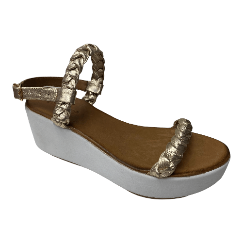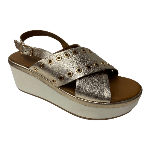 INUOVO SCARPE SANDALO ZEPPA DONNA INUOVO 8848 PELLE ORO ORIGINALE PE NEW