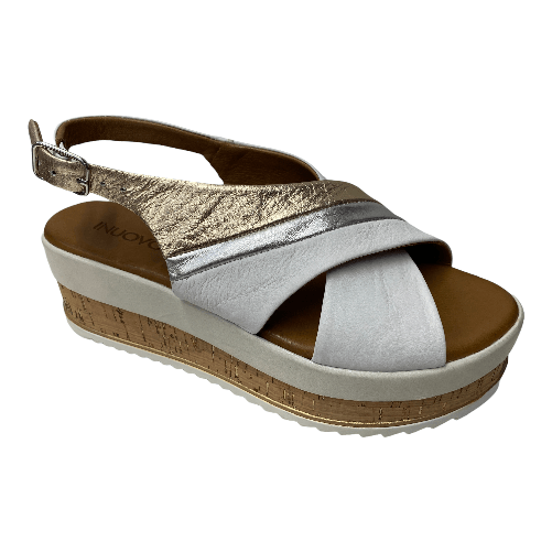 INUOVO SCARPE SANDALI DONNA INUOVO ORIGINAL 6081 WHITE PELLE STRASSES ZEPPA WOMAN SHOES